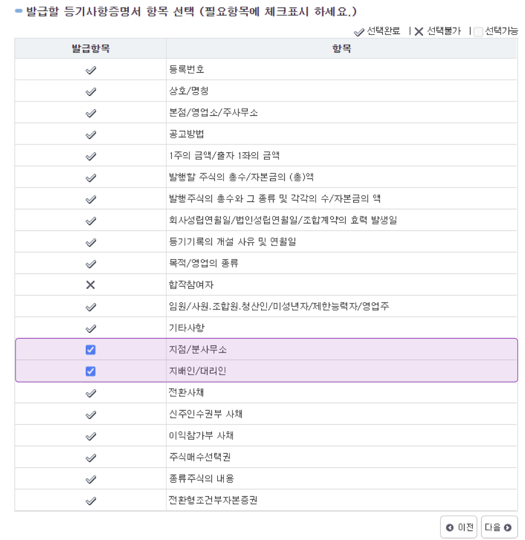 혹시라도 잘못 선택하면 엉뚱한 법인의 등기부등본을 발급받을 수 있으니 주의 또 주의!